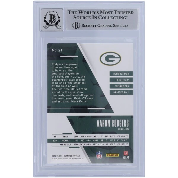 Be the first to review “Aaron Rodgers Green Bay Packers Autographed 2015 Panini Certified Mirror Silver #21 #354/499 Beckett Fanatics Witnessed Authenticated 10 Card With “SB XLV MVP” Inscription” Cancel reply