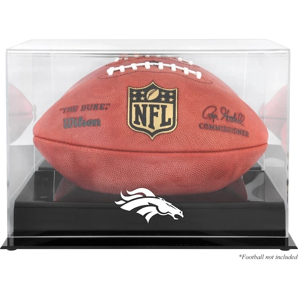 The Denver Broncos black base football logo display case is made of 1/8″ thick acrylic. It features a black acrylic base and a clear acrylic removable lid with engraved team logo. The case is perfect for a collectible football. It is officially licensed by the National Football League. Measures 10″ x 12 1/2″ x 9 1/4″. Memorabilia sold separately.