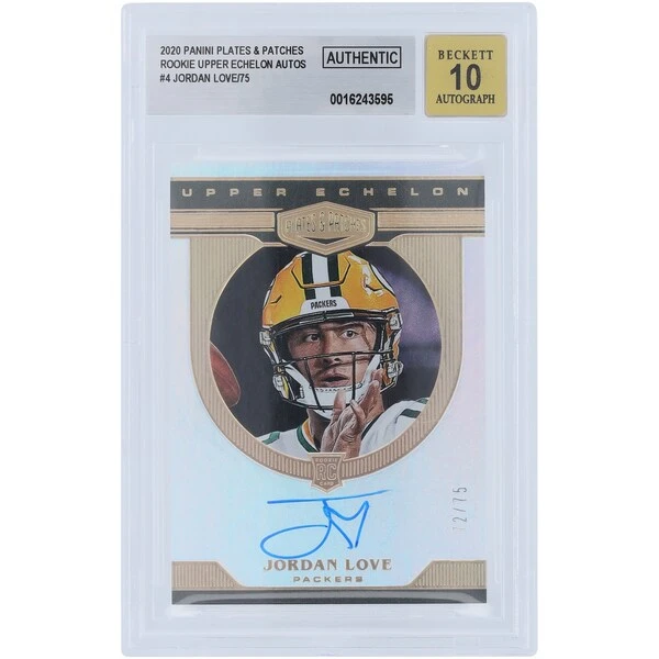 This Jordan Love autographed 2020 Panini Plates & Patches Upper Echelon #UE-JL #72/75 BGS Authenticated 10 Rookie Card is ready to help you display your Green Bay Packers fandom. Featuring a slab encasing, this striking card also showcases the unique signature of Jordan Love to make it the ultimate collector’s item.