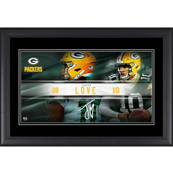 Be the first to review “Jordan Love Green Bay Packers Facsimile Signature Framed 10″ X 18″ Player Nameplate Collage” Cancel reply