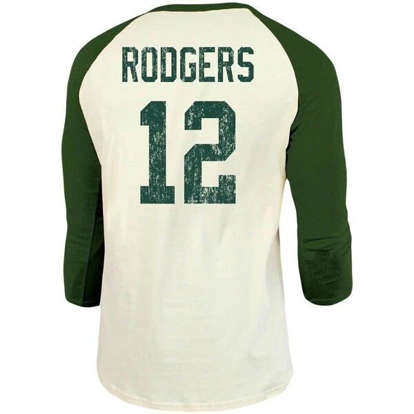 You love to look your absolute best whenever you watch the Green Bay Packers play. Now you can add a cool and classic touch to your game day ensemble by wearing this Aaron Rodgers Vintage Player Name and Number raglan 3/4-sleeve T-shirt from Fanatics Branded. The distressed Green Bay Packers graphics on the front and back of this tee will help you highlight your unwavering loyalty to the team.