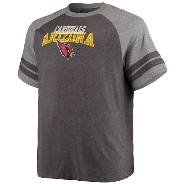 Men’s Fanatics Branded Charcoal/Heathered Gray Arizona Cardinals Big & Tall Two-Stripe Tri-Blend Raglan T-Shirt