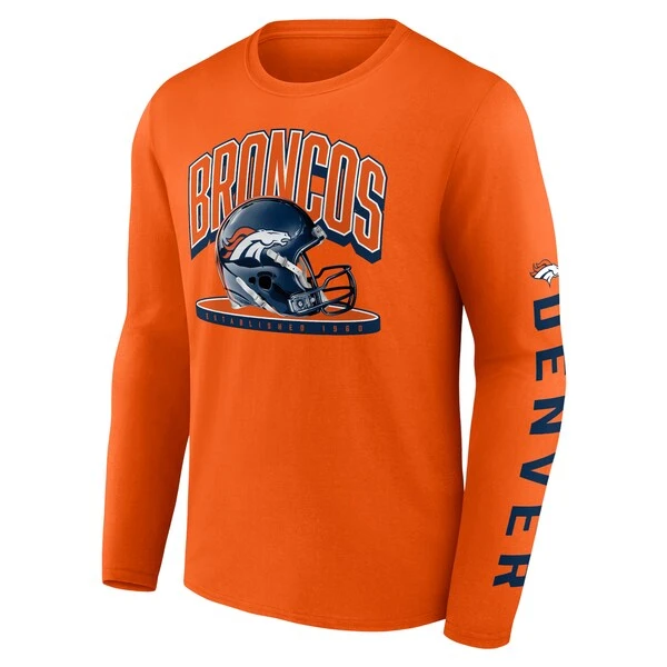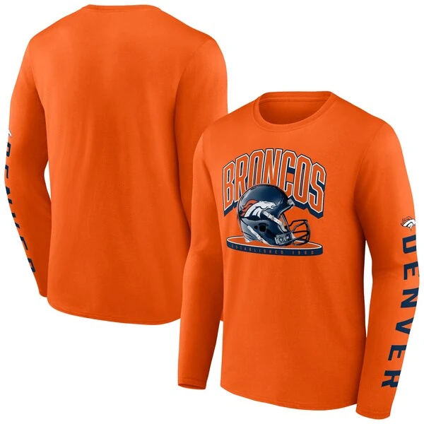 Men’s Fanatics Branded Orange Denver Broncos Helmet Platform Long Sleeve T-Shirt
