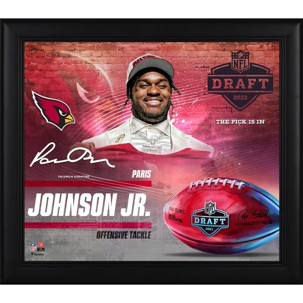 Celebrate an unforgettable moment for Paris Johnson Jr. and Arizona Cardinals fans with this Framed 15″ x 17″ 2023 NFL Draft Day Collage. Ready to hang in your home or office, this collage features a facsimile signature and is the perfect way to commemorate the Arizona Cardinals first round selection for years to come.