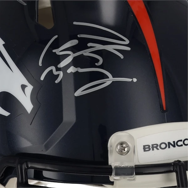 Celebrate past and present of the Denver Broncos quarterback position with this Peyton Manning and Russell Wilson autographed Riddell Speed Authentic Helmet. Two of the biggest offseason acquisitions in franchise history, both Manning and Wilson were signed by the Broncos in hopes of making them instant Super Bowl contenders. In Manning’s case, he lived up to those lofty expectations by helping lead the team to a victory in Super Bowl 50. While time will tell if Russell Wilson can have the same success, the excitement surrounding the team due to his arrival is reminiscent of the Manning signing in 2012. This helmet comes personally hand-signed by both Manning and Wilson, giving you a truly special piece of Denver Broncos memorabilia to add to your collection.