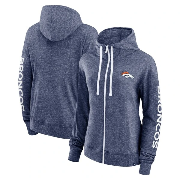 Women’s Fanatics Branded Heather Navy Denver Broncos Opening Coin Flip Lightweight Full-Zip Hoodie
