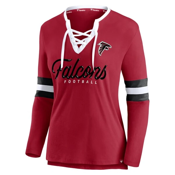 Women’s Fanatics Branded Red Atlanta Falcons Block Party Team Script Lace-Up Long Sleeve T-Shirt