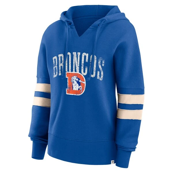 Women’s Fanatics Branded Royal Denver Broncos Bold Move Dolman V-Neck Pullover Hoodie