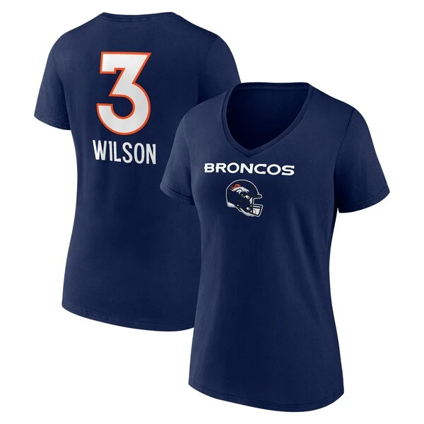 Women’s Fanatics Branded Russell Wilson Navy Denver Broncos Team Wordmark Name & Number V-Neck T-Shirt
