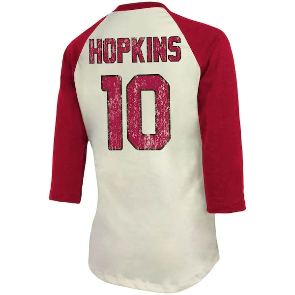 You love to look your absolute best whenever you watch the Arizona Cardinals play. Now, you can add a classic touch to your game day ensemble by wearing this DeAndre Hopkins Player Name and Number raglan 3/4-sleeve T-shirt from Fanatics Branded. The distressed Arizona Cardinals graphics on the front and back of this tee will help you highlight your unwavering loyalty to the team.